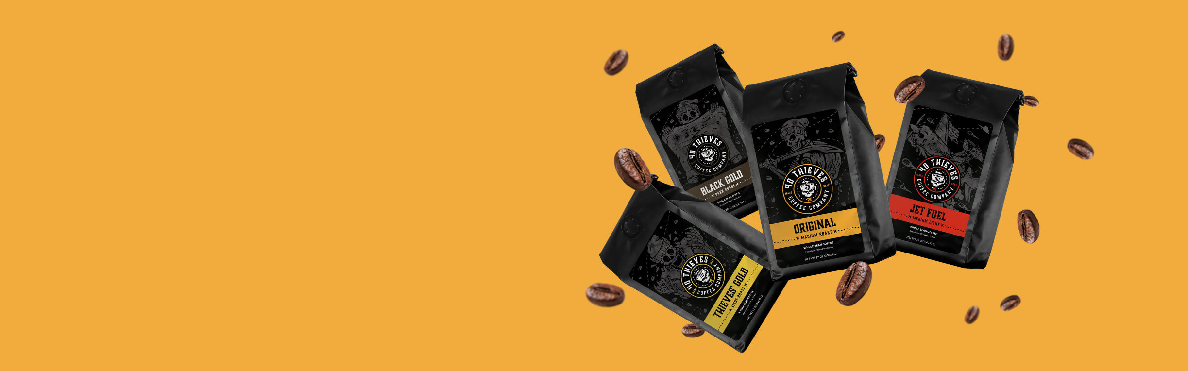 - "Thieves’ Gold" light roast espresso for a bright, sweet, and golden cup.