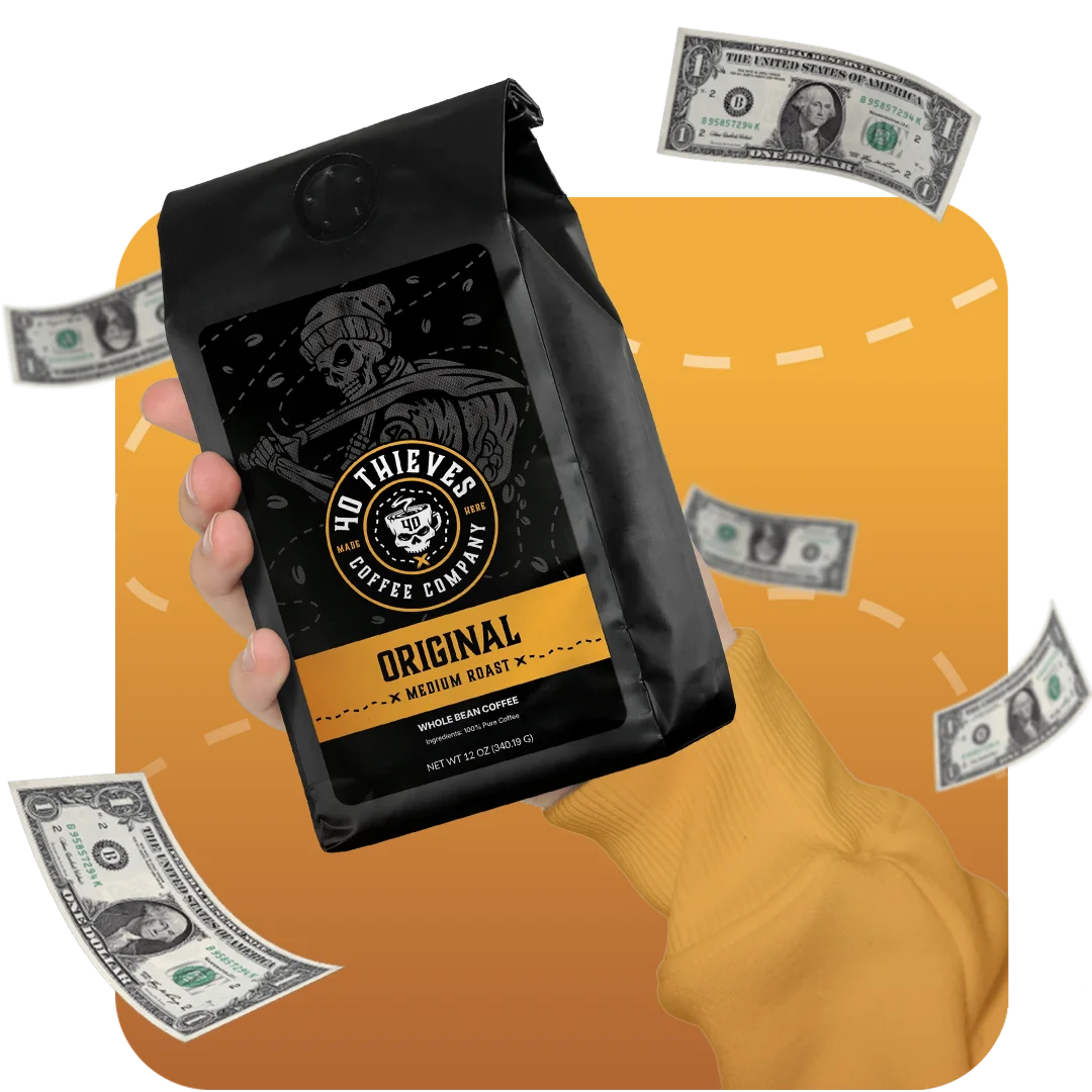 You can purchase our whole bean coffee directly from the 40 Thieves website. Sourced from the finest coffee-growing regions and roasted fresh in Temecula, our beans are perfect for coffee enthusiasts who prefer grinding their own coffee for ultimate freshness.