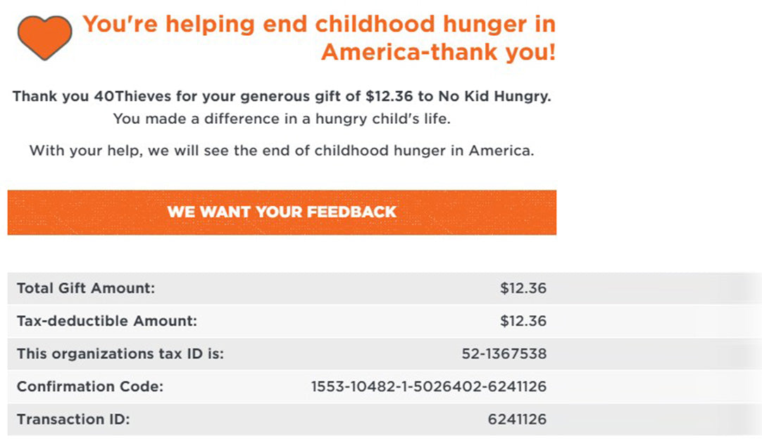 You deserve to see exactly how your purchase helps feed kids. Here's every donation, documented.